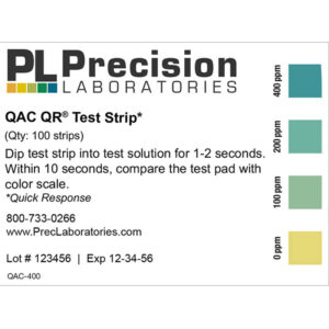 Quat test papers and strips utilize an effect commonly referred to as the “protein-error of indicators” to quantify the QAC ppm levels.While first observed with proteins (thus the name), the technique utilizes pH indicators and buffering systems to create an environment where the test paper or strip reacts (develops color) proportional to the amount of analyte (QAC) present.The PL quat test papers and strips have color charts calibrated to solutions prepared from OASIS 146, an industry standard quat product.The performance of the papers and strips with alternate quat products should always be verified.In addition, any additives should be evaluated to see if they contribute to the “protein-error” effect
