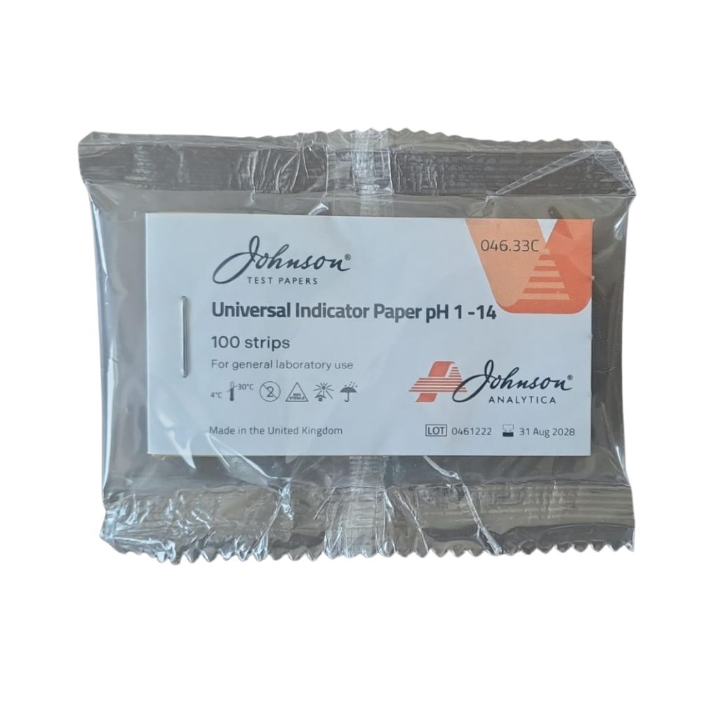 Johnson Test Papers Universal Indicator Paper pH 1 – 14, pH paper- for use in laboratory, food service, education, Environmental / Safety, cosmetics, industrial,and water treatment Available as 10 books of 20 strips, 1 reel (5m x 7mm), 3 reel refill pack*,and 100 strips per pack.